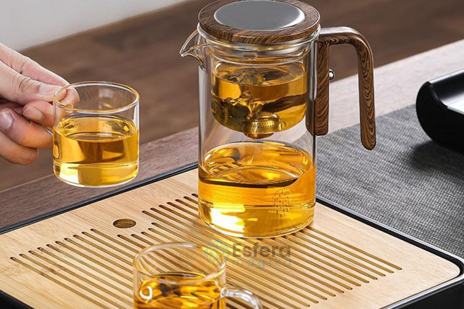 Produzido em vidro de alta qualidade, resistente ao calor e com excelente desempenho à prova de explosão, este bule oferece segurança e durabilidade. O cabo em madeira maciça proporciona uma pegada confortável e firme, enquanto o sistema inteligente de separação mantém as folhas afastadas da água, garantindo uma bebida mais pura, clara e saborosa. Além disso, seu design versátil permite preparar não apenas chá, mas também café e outras infusões com praticidade.